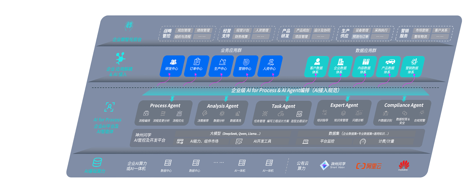 鼎点平台问学智车解决方案是一套基于AI技术的汽车行业智能化系统,,覆盖从底层算力到顶层AI应用的全栈方案。。。方案由算力层、、模型层和应用层组成:算力层,,方案支持多种一体机配置,,,,具备云端灵活部署、、、、多云适配以及动态优化计算资源的能力;模型层,,,鼎点平台问学平台版提供了企业级AI应用一站式构建与管理平台,,,支持基于后训练强化技术的汽车企业专属模型的训练、、、评测和运营;应用层,,,,鼎点平台问学DeepSeek版提供包括超级员工、、智能招采、、、、智能营销、、智能客服、、、、AI for BI等一系列解决方案,,可助力汽车行业实现数字化转型,,,,让管理更智能、、、响应更敏捷。。。。